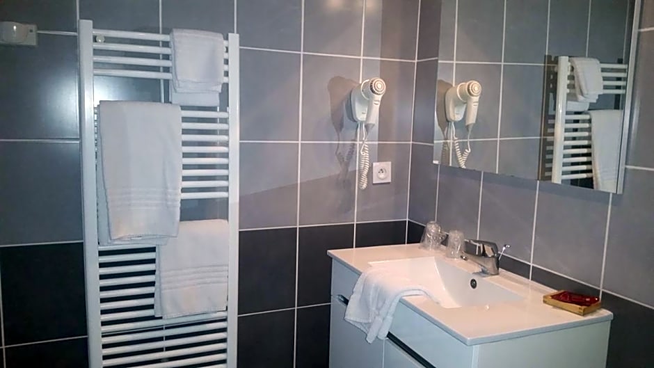 Room with attached bathroom with a shower, flat-screen TV with satellite channels and free Wi-Fi internet access.